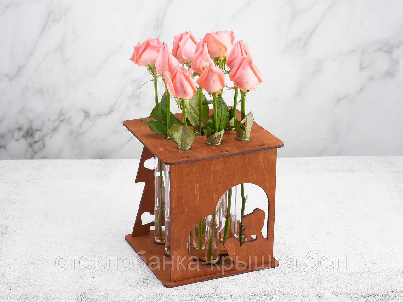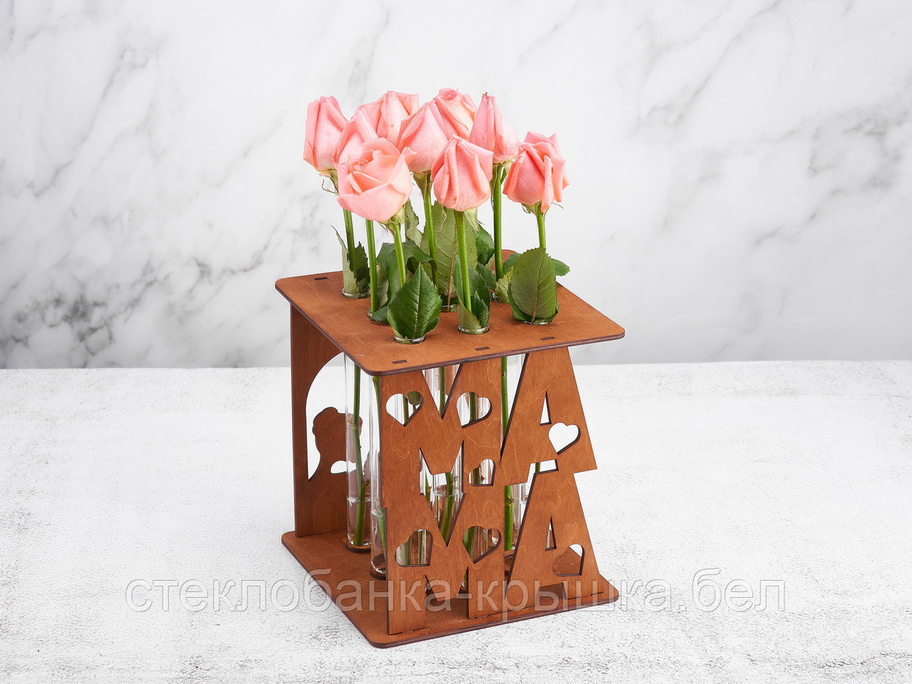Подставка деревянная штатив для цветов на 9 пробирок 60 мл "Мама" с пробирками в комплектеВ наличии