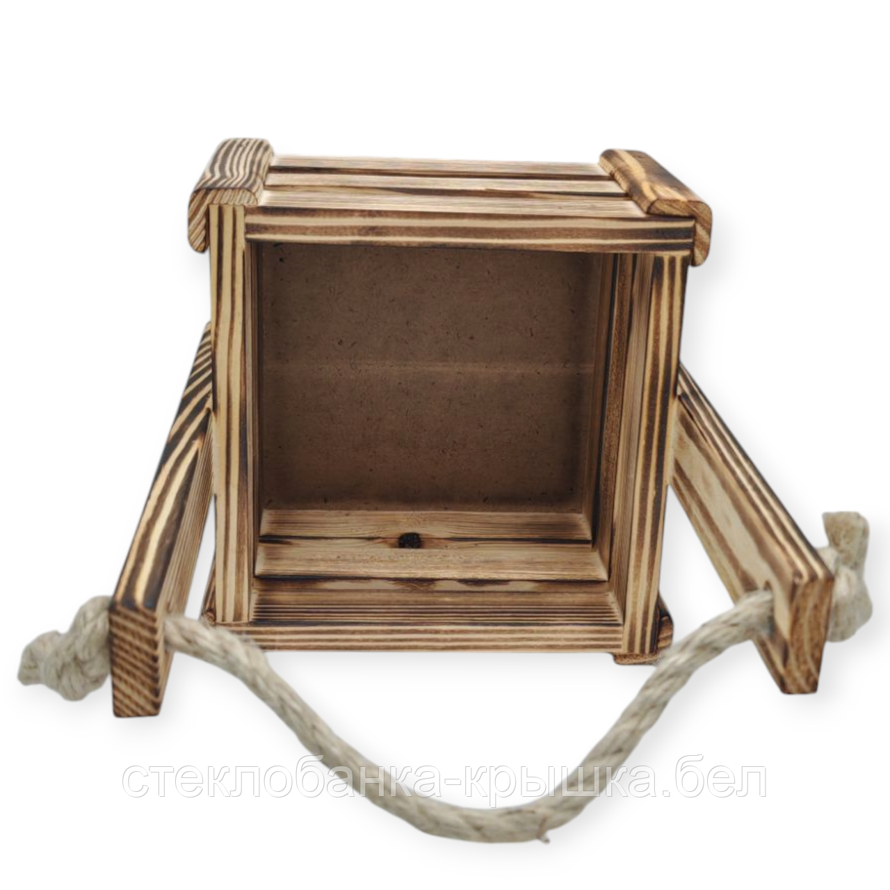 Ящик деревянный с джутовой ручкой 15х15х10см(высота с ручкой 24см)